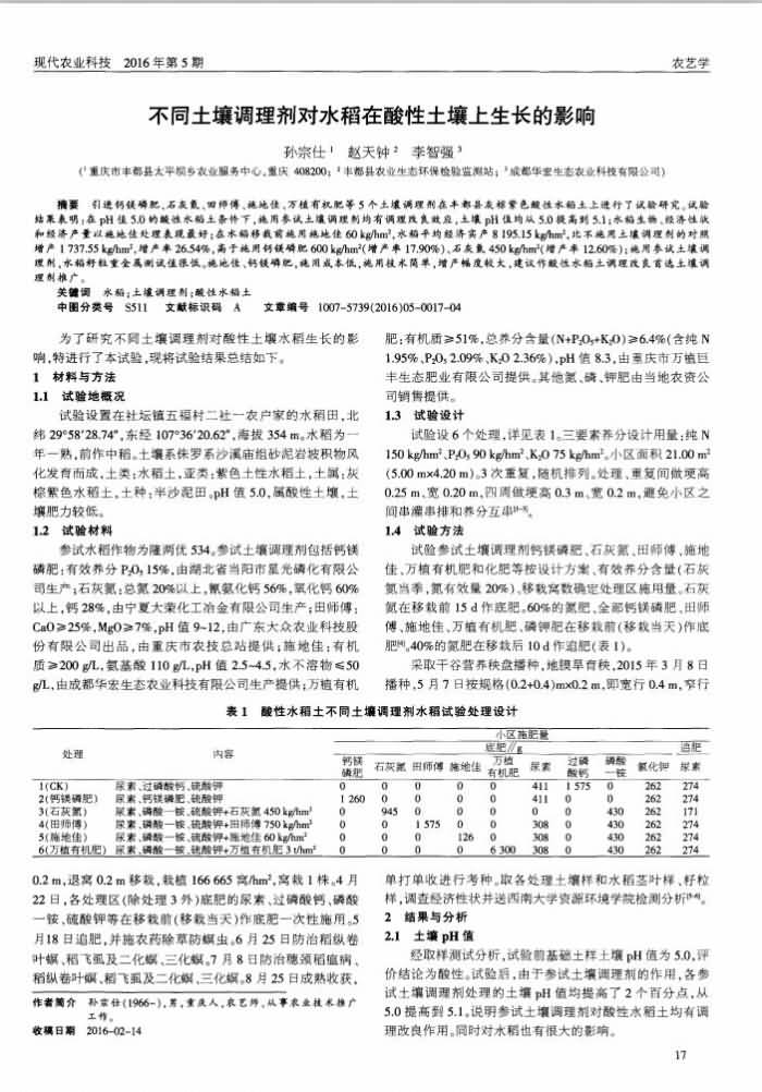 《現代農業(yè)科技》2016年 第5期不同土壤調理劑對水稻在酸性土壤上生長的影響