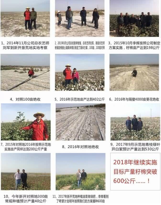 有機(jī)生物改良新開荒鹽堿地,第一年種植棉花畝產(chǎn)200公斤,第二年400公斤、第三年棉花畝產(chǎn)達(dá)500公斤,實現(xiàn)不花錢成功改良鹽堿地。
