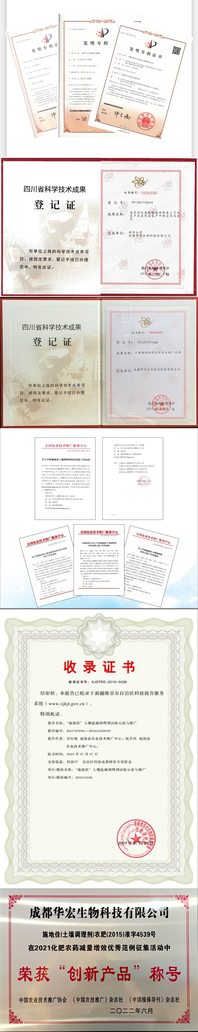 2015年獲得四川省科技廳成果鑒定結(jié)論:施地佳土壤調(diào)理劑—國內(nèi)領先